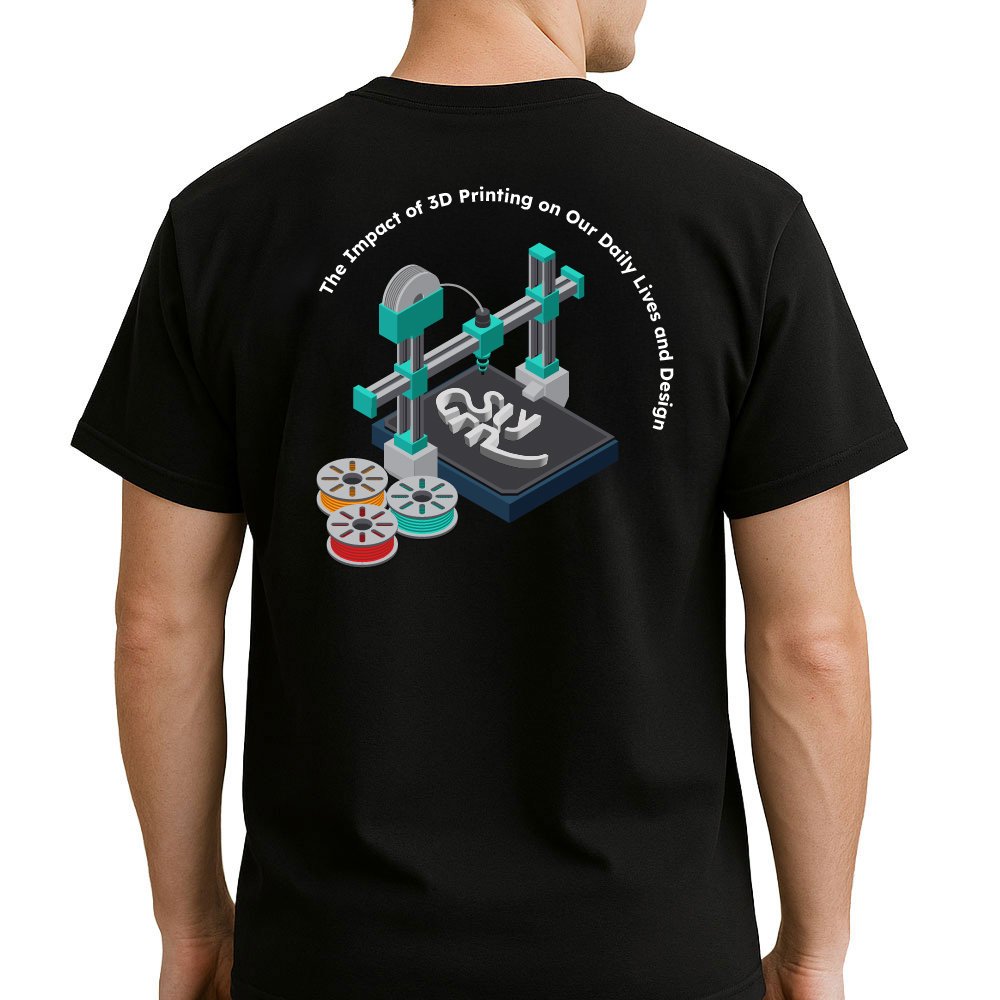 Eye-catching “The impact of 3D printing on our daily lives and Design” text with a 3D printing graphic